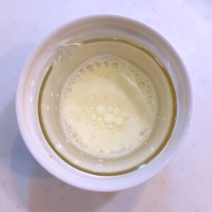 | 2 | 牛乳とオイルは合わせて混ぜ、湯銭で温めておく。 | ![]() |